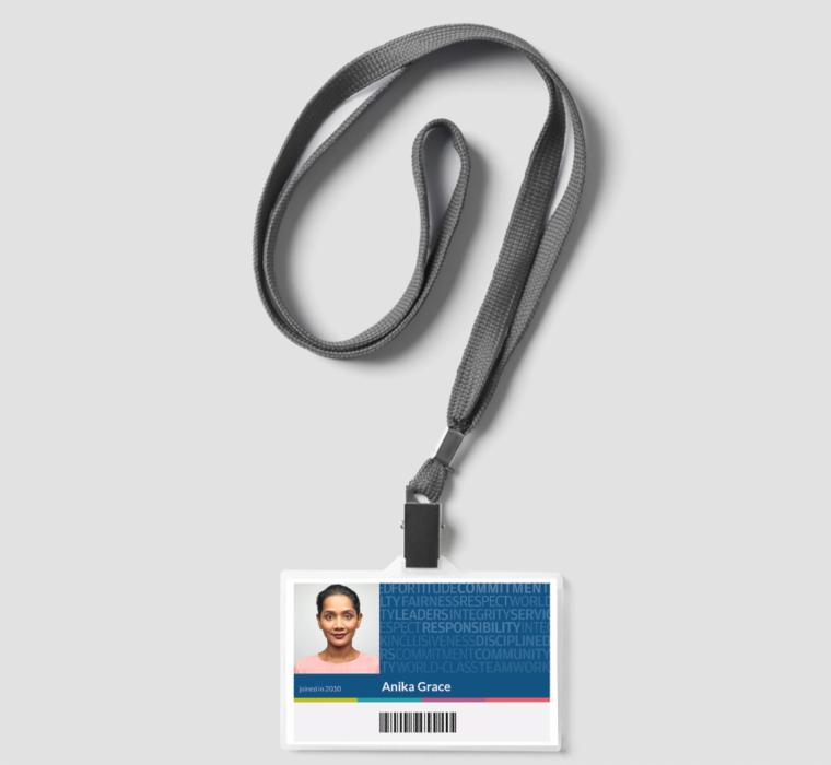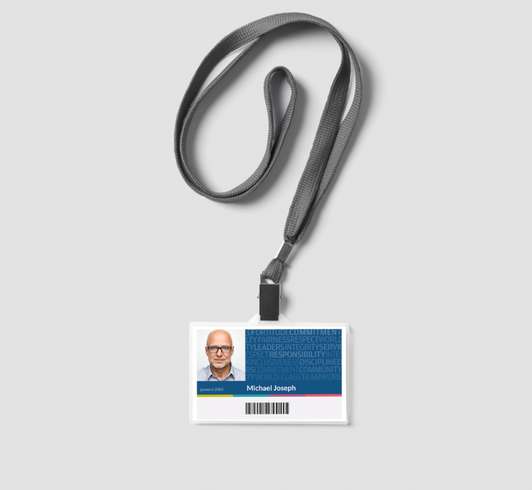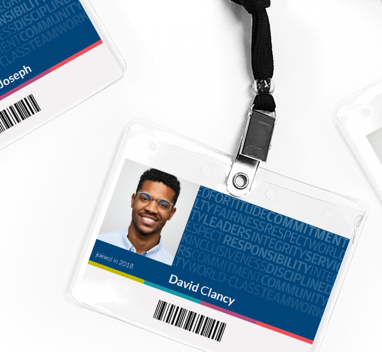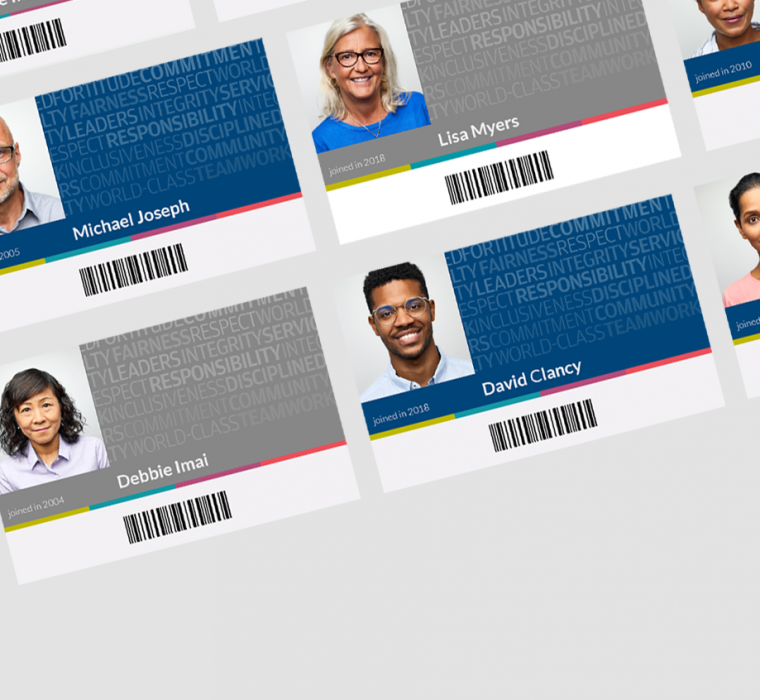 I used these words to create the background for the ID cards, effectively bringing the employees into the design process and making it a more collaborative effort. Throughout the project, I emphasized to employees that they provided the content and data for the design. After designing the cards, I went through an approval process and presented the strategy and thought behind the cards to senior leadership. I highlighted the need to focus on the people and culture of the company, which was reflected in the design of the ID cards.